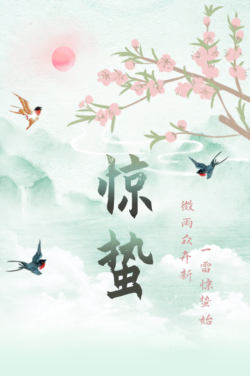 驚蟄,是二十四節(jié)氣中的第三個(gè)節(jié)氣,反映了自然界生物受節(jié)律變化影響而萌發(fā)、生長(zhǎng)的狀態(tài)。到了驚蟄節(jié)氣,陽(yáng)氣上升,氣溫回暖,春雷乍響,雨水增多,自然中的萬物煥發(fā)出勃勃生機(jī)。在農(nóng)耕方面,驚蟄是古代農(nóng)耕文化對(duì)自然節(jié)令的反映,提醒人們要開始準(zhǔn)備春耕。